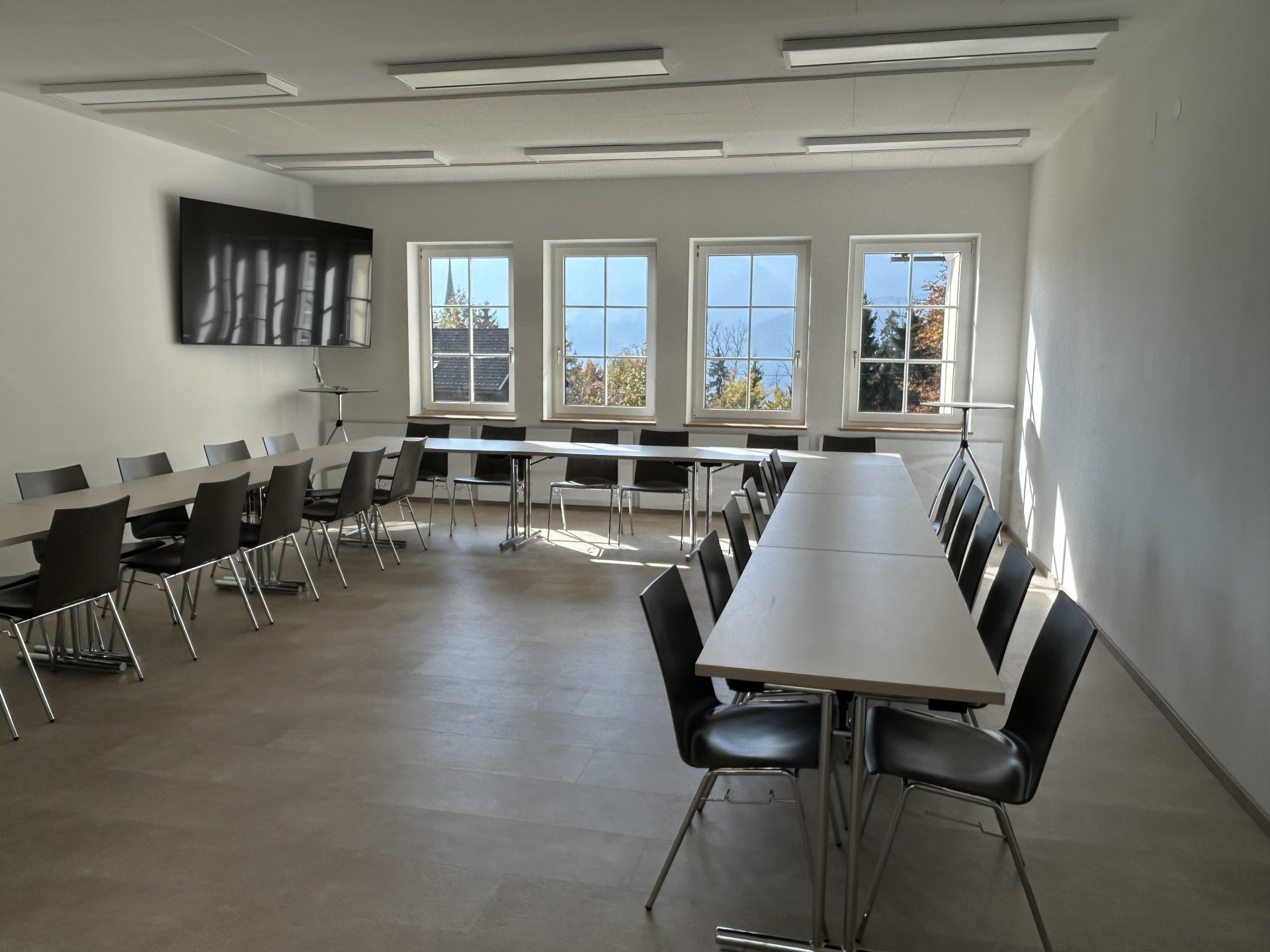 Die alten Klassen im ersten Stock wurden zu einem modernen Multifunktionsraum umgebaut, ausgestattet mit einer Küche und einer digitalen TV-Anlage. Hier sollen künftig vielfältige Veranstaltungen stattfinden – von Pensionistentreffen und Workshops über Slow-Food-Aktivitäten bis hin zu Kinderbetreuung und Seniorenturnen.