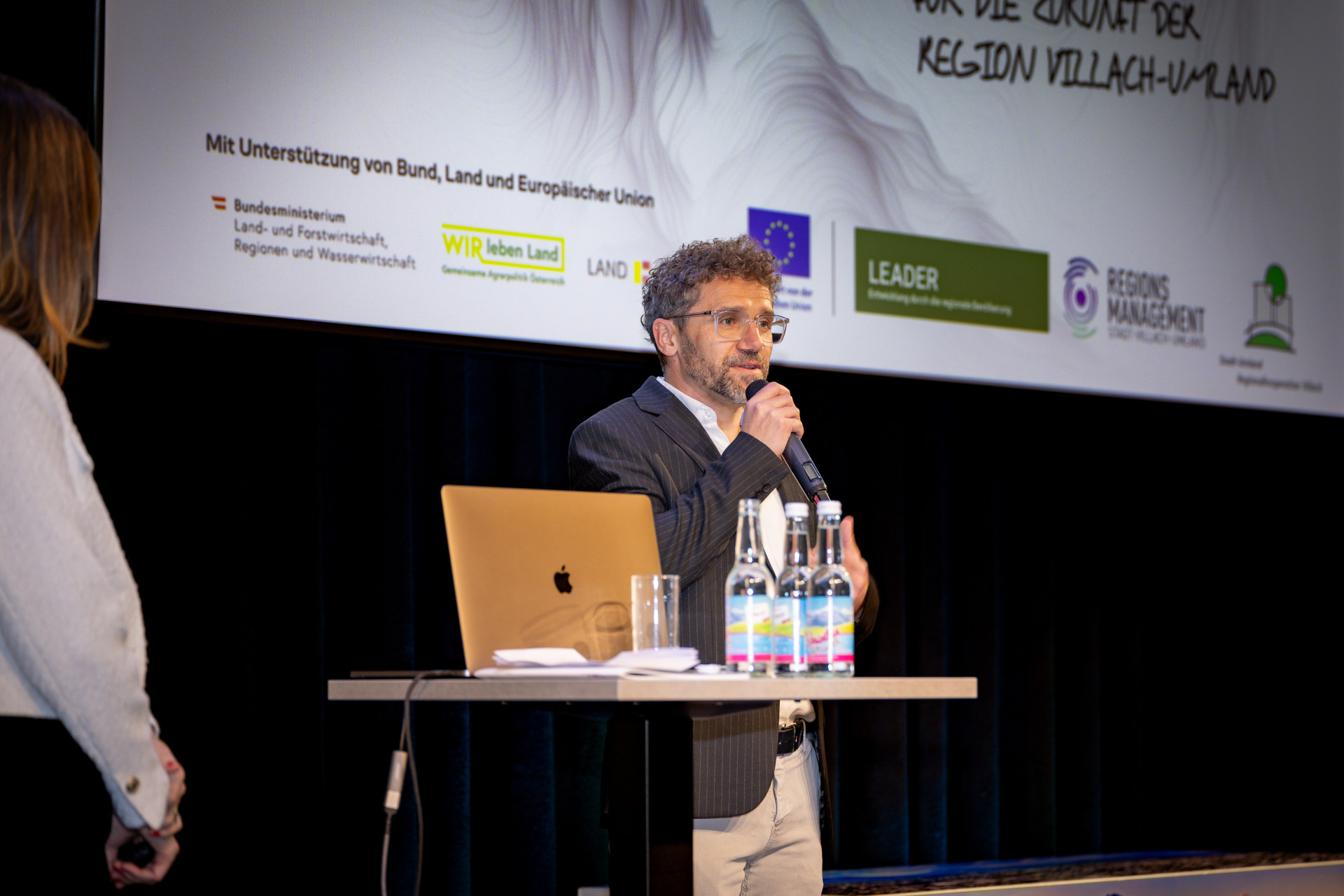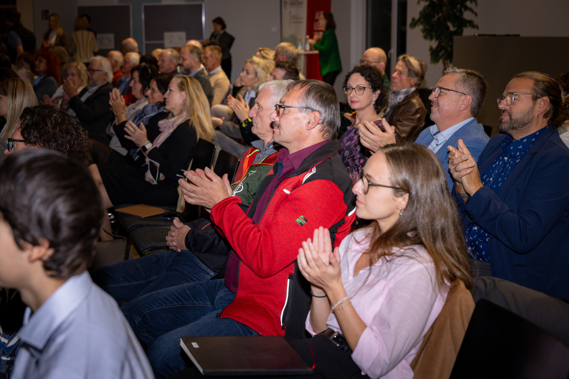 Ein besonderer Höhepunkt des Abends war der Impulsvortrag von Roland Gruber, der mit seinem Weitblick für lebendige Ortskerne und gemeinschaftliche Räume inspirierte. Er zeigte, wie Kooperation, Gestaltung und Mut neue Perspektiven eröffnen – und dass Regionalentwicklung vor allem vom Miteinander lebt. Den emotionalen Schlusspunkt setzte Poetry-Slamerin Magdalena Pircher: Mit einem Sandkorn als Symbol nahm sie das Publikum mit auf eine poetische Reise durch Raum und Zeit – ein Bild für die Kraft kleiner Impulse, die große Veränderungen anstoßen können.